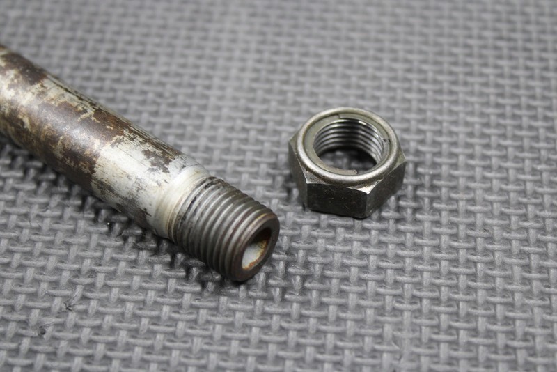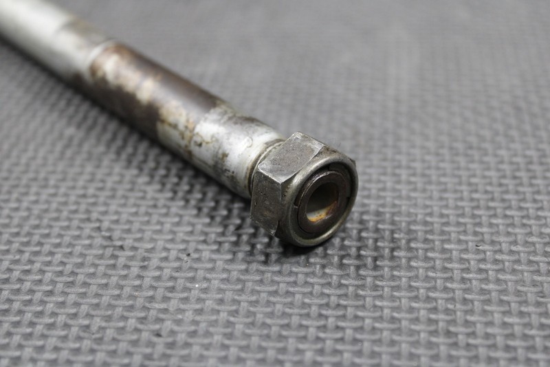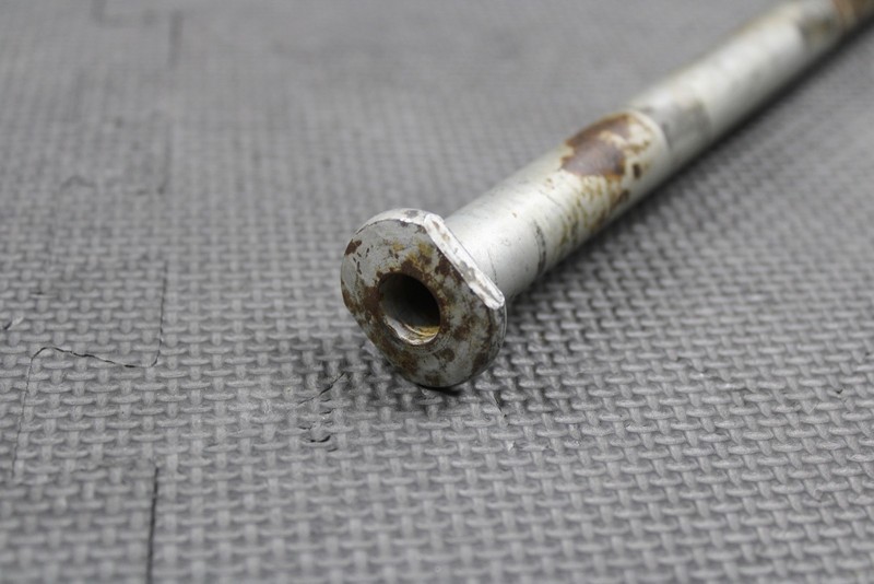 This swingarm bolt is in good condition and shows normal signs of wear. All threads intact.