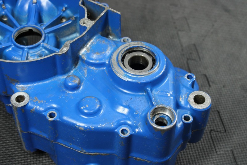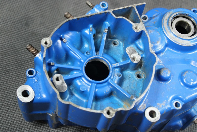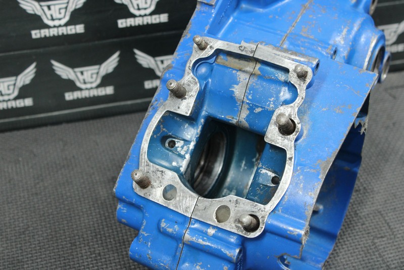 This crankcase is in very good condition and shows normal signs of wear. No cracks, welds, or repairs. All bearings rotate freely, however do show signs of wear, and should be replaced before installed. All threads, and sealing surfaces in good shape. Ready to assemble, and ride!