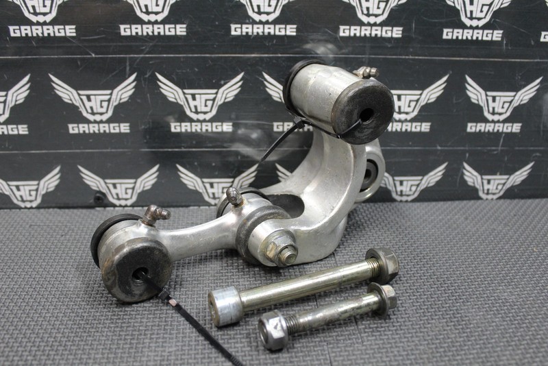 This rear shock linkage is in good condition and shows normal signs of wear. No cracks, welds or repairs. All bearings rotate freely and feel tight. All hardware intact. Ready to install and ride.