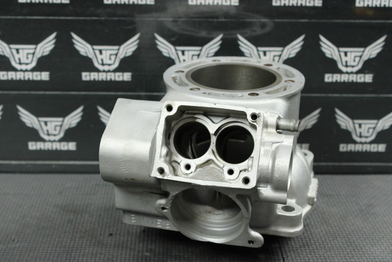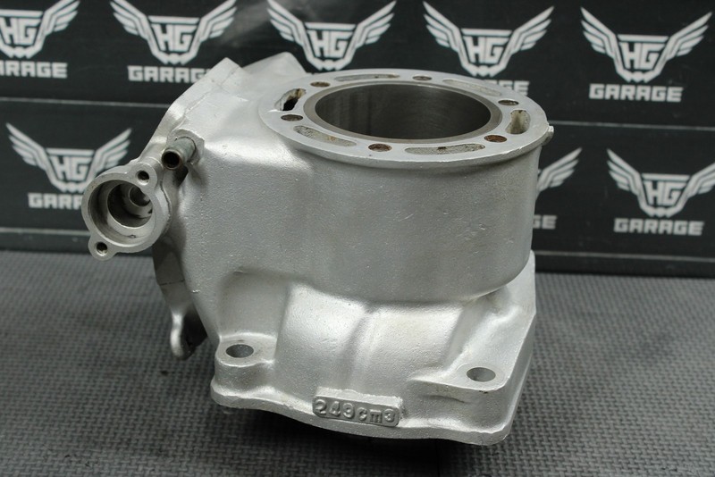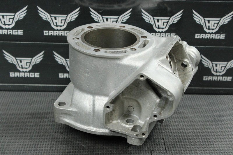 This cylinder jug is in very good condition and shows normal signs of wear. No cracks, or breaks. Cylinder has been sleeved, and bored to 69mm +2mm over stock. No deep scratches or gouges in bore, and is in great running shape with low wear. One small area where base gasket seals has some pitting/corrosion as shown, however still seals properly when installed. Overall great running shape, and is Ready to bolt on, and ride!
