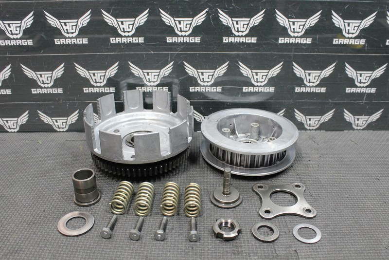 This complete clutch is in good condition and shows normal signs of wear. No cracks, welds or repairs. Basket ears have minor wear/grooving as shown, nothing major or excessive, and clutch functioned as it should when assembled. However is recommended grooving be filed down before installed for optimal performance. No other excessive wear seen when inspected. All hardware intact. Ready to assemble, and ride.