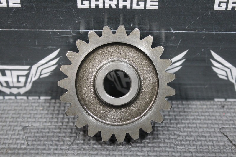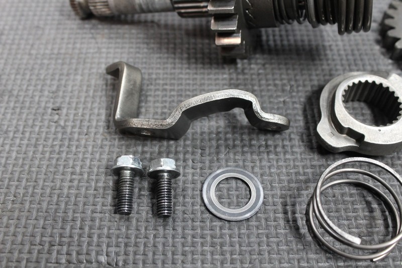 This kickstart gear with shaft is in good condition and shows normal signs of wear. No cracks or repairs. No chipped teeth on any of the gears. All hardware intact. Splined end of shaft has one decent mash mark from kickstart lever being installed improperly. Still functions, and slides on with a little force applied. Ready to install, and ride.