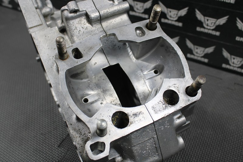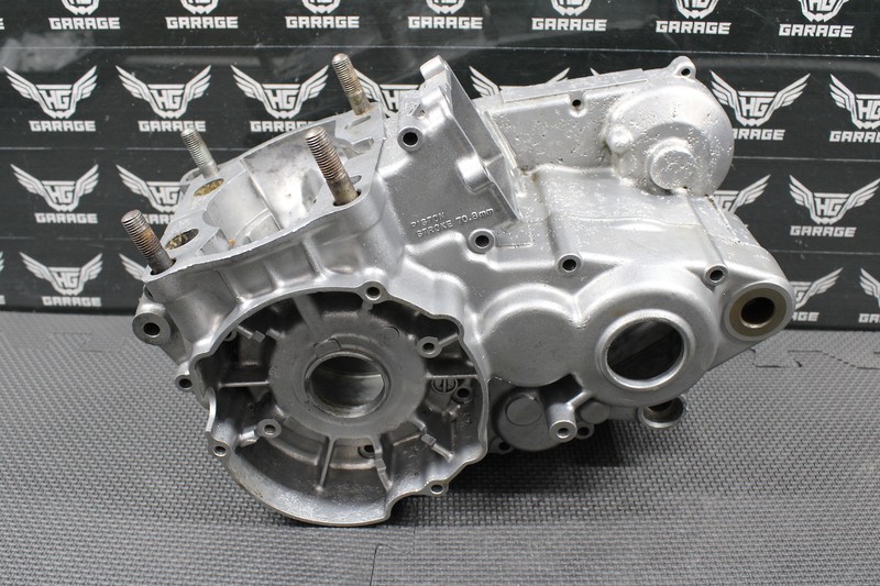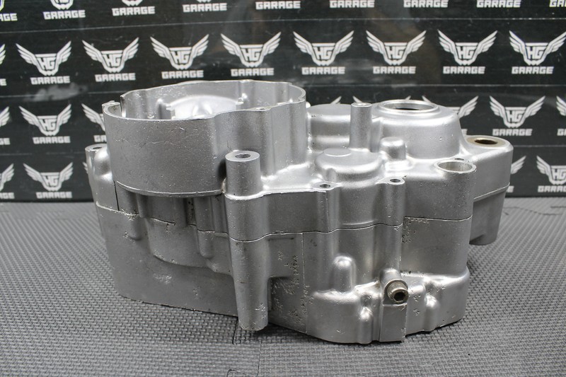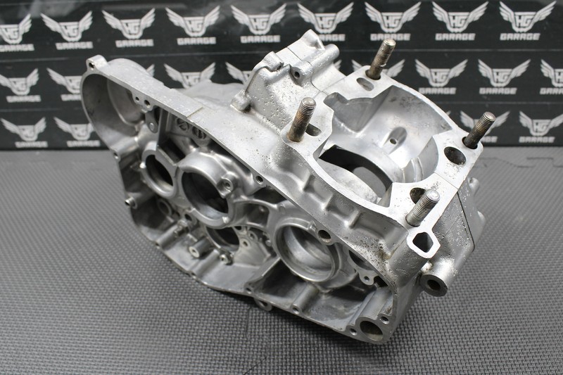 This matching crankcase set is in good condition with normal wear. No cracks or damage. All sealing surfaces, threaded holes, and bearing journals are intact. Has some cosmetic pitting on the exterior of the cases as shown, but no leaks or issues. Good running shape.
