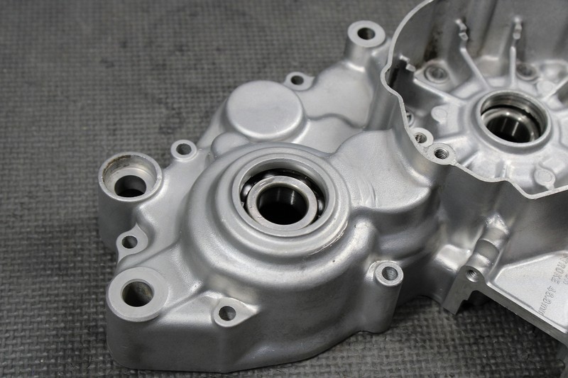 This left crankcase is in very good condition and shows normal signs of wear. No cracks, or repairs. All threads intact. Sealing surfaces in great shape, no deep tool marks, or gouges. Ready to assemble, and ride.
