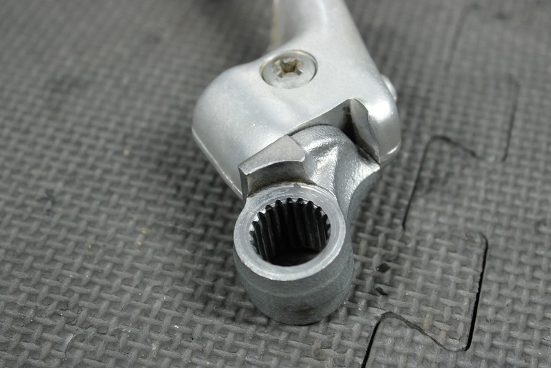 This kickstart lever is in good condition and shows normal signs of wear. Kickstart knuckle has some minor wobble, however still functions, and clicks in place when rotated. No cracks, or bends. Ready to bolt on, and ride!