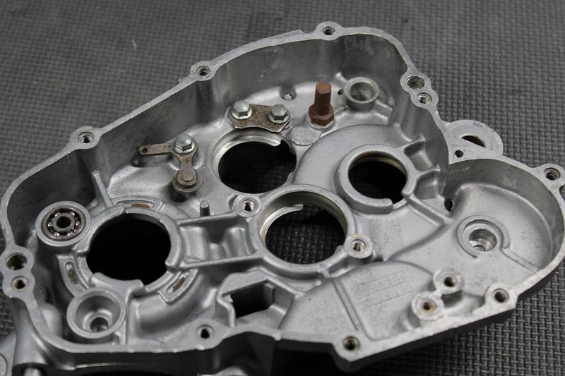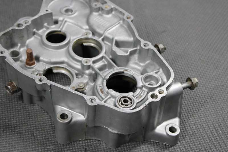 This right crankcase is in good condition and shows normal signs of wear. No cracks, welds, or repairs. All bearings have been removed and will need to be replaced. Center case sealing surfaces have some minor tool marks as shown, may need to be surfaced before assembled to insure a proper seal. All threaded holes intact.