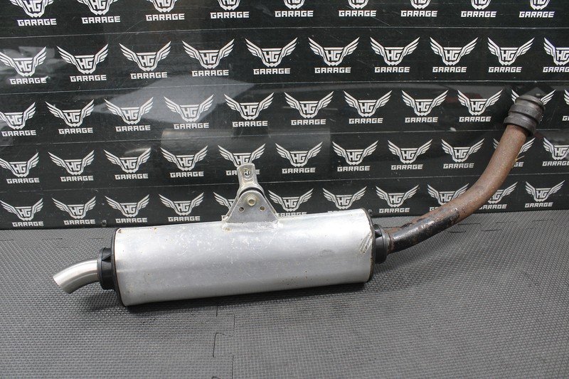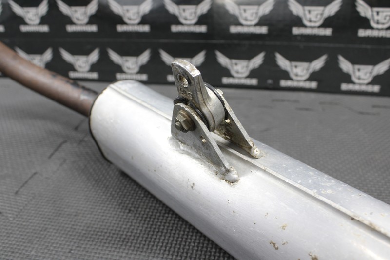This muffler is in good condition and shows normal signs of wear. No cracks or holes. All mounts are intact.