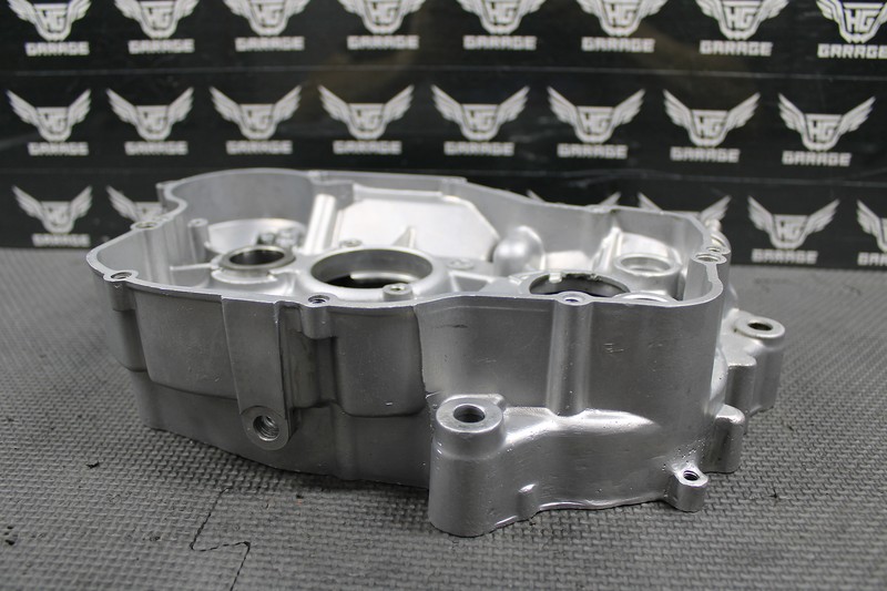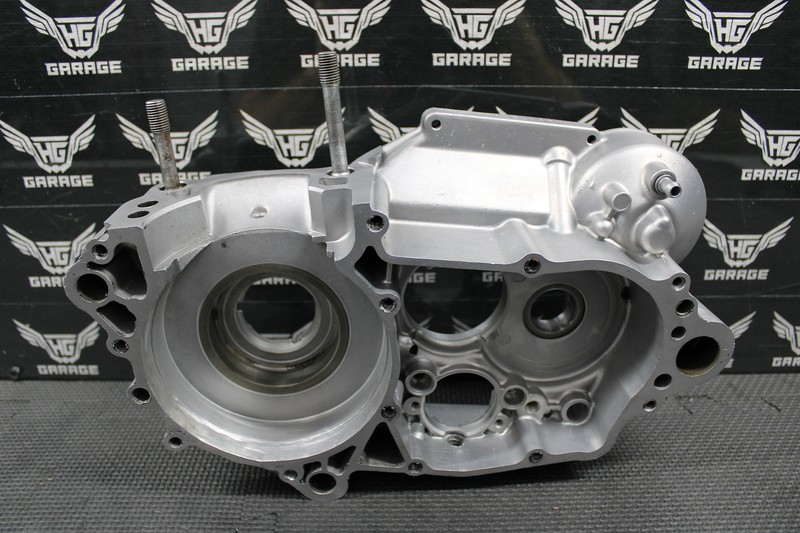 This right crankcase is in good condition and shows normal signs of wear. Removed from a good running bike. Crankcase overall is in good shape, but has a couple of flaws. One bolt hole has cracked a piece off as shown. Still threads and torques, but loose piece of aluminum should be addressed. Case has been professionally rewelded in one area as shown, does not leak and functions as it should. Drain bolt has been slightly retapped, but threads are not perfect. Bolt still torques and seals, but recommend a helicoil. All sealing surfaces and bolt holes are intact. All bearing journals in good shape. Other then these small flaws, the case is in good running shape.