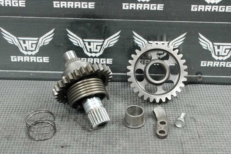 This kickstart gear with shaft is in very good condition and shows normal signs of wear. Good functioning shape. No cracks, or excessive wear. Ready to install, and run!