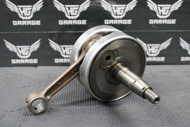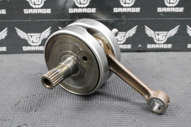 This OEM crankshaft is in very good condition and shows normal signs of wear. Crank spins freely and was removed from a good running bike. No end play in connecting rod. Shafts and webs in good shape. Ready to install and run!