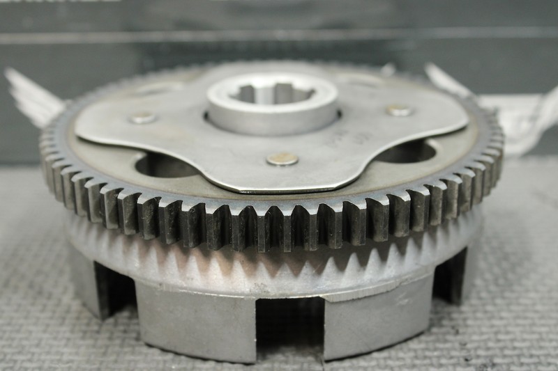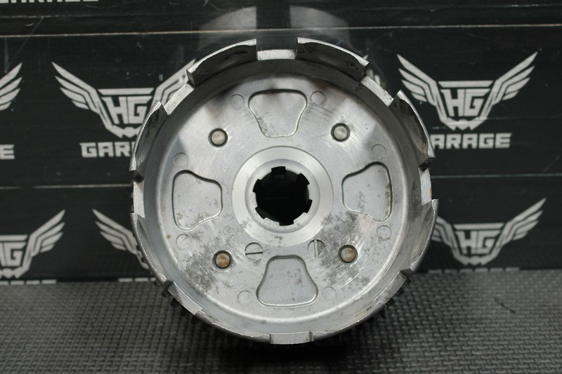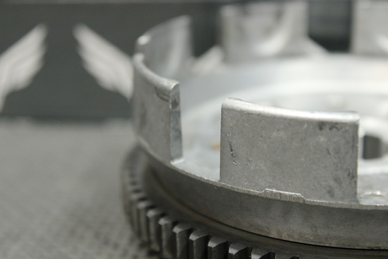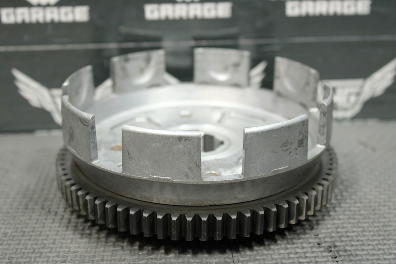 This clutch basket is in very good condition and shows normal signs of wear. Primary gear has some slop and, there is some light scratches on the inside of the basket as shown.