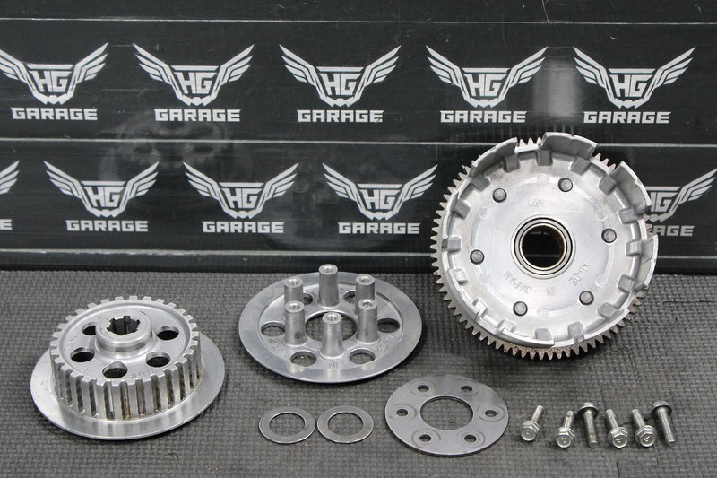 This complete clutch is in very good condition and shows normal signs of wear. No excessive wear. No cracks, or breaks. Nice running shape. Ready to assemble.