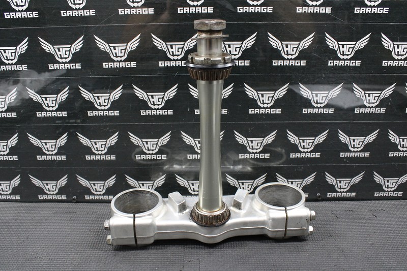 This lower tree is in good condition and shows normal signs of wear. No bends or damage. All threaded holes are intact. Bearings turn freely, but are fairly old. Good running shape.