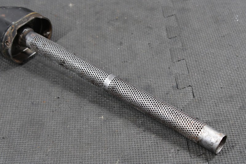 This muffler is in good condition and shows normal signs of wear. Has one small crack in screen as shown, however still functions properly. Minor surface corrosion, and scratches can be seen as shown. Ready to install.