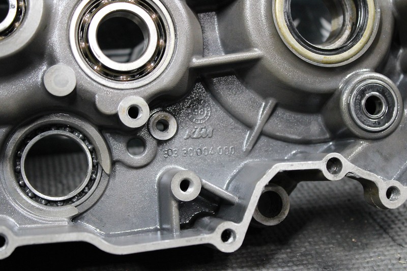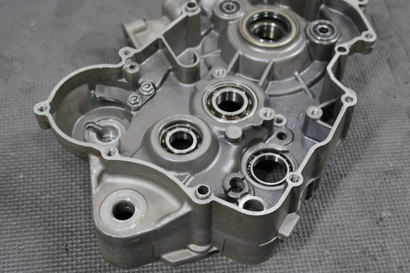 This right crankcase is in very good condition and shows normal signs of wear. Nice running shape, all bearings rotate freely. Sealing surfaces in good shape, one small toolmark where oring seals waterjacket for inner clutch cover, however still seals properly. All threads intact. Ready to assemble.