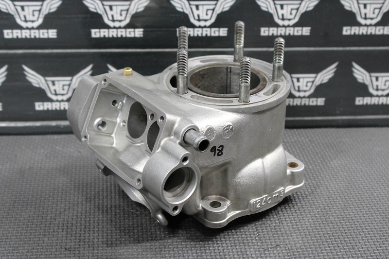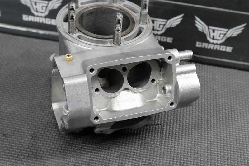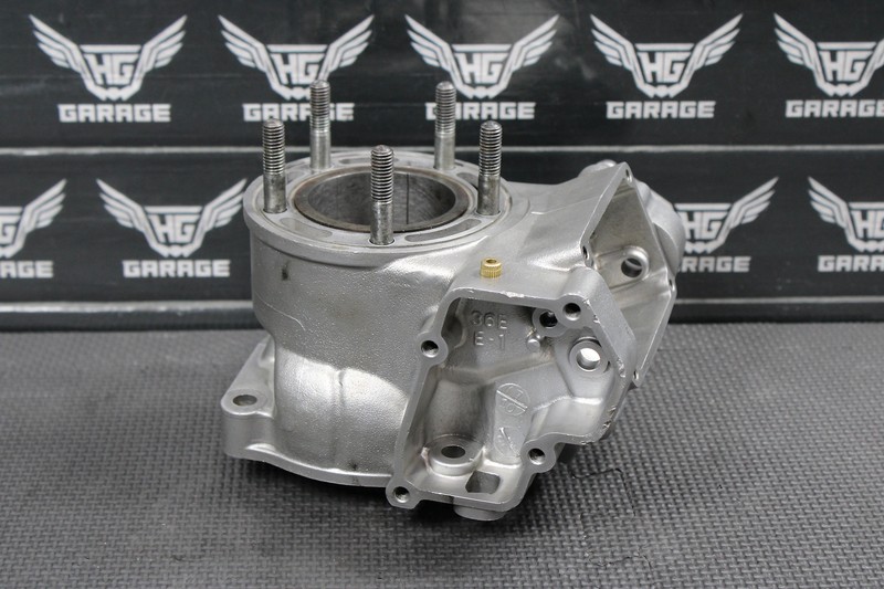 This cylinder jug is in very good condition and shows normal signs of wear. Cylinder has a stock 54mm bore sleeve installed, has some deep scratches in bore and will need to be bored over in order to run. No cracks, welds, or repairs done. All threaded holes intact and thread properly. Again this cylinder is not in running condition, and will need to be resleeved, or bored over to function properly.