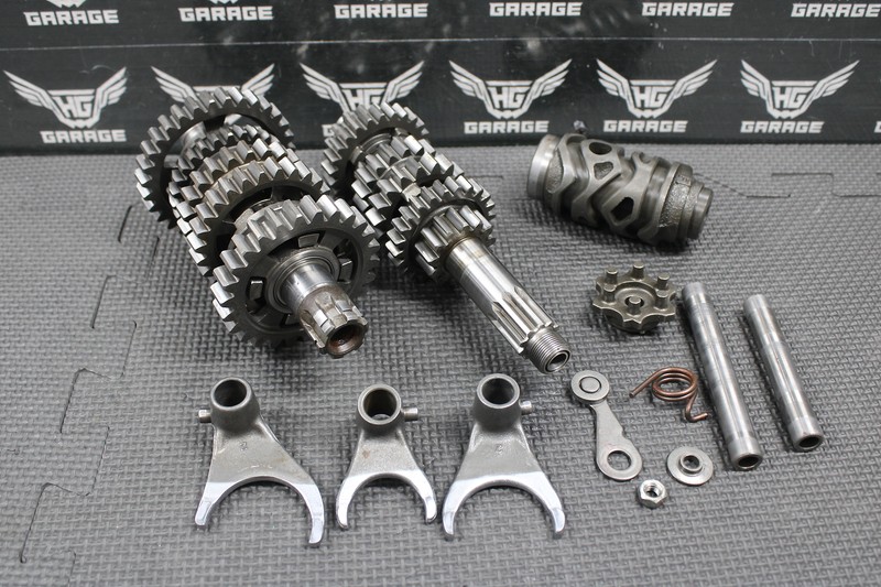 This transmission is in great condition with minor wear. Good running shape with no chipped or damaged gears. Shift forks and dogs in nice shape with minor wear. Fully functional transmission assembly. Includes all hardware as shown. Ready to drop in and ride!