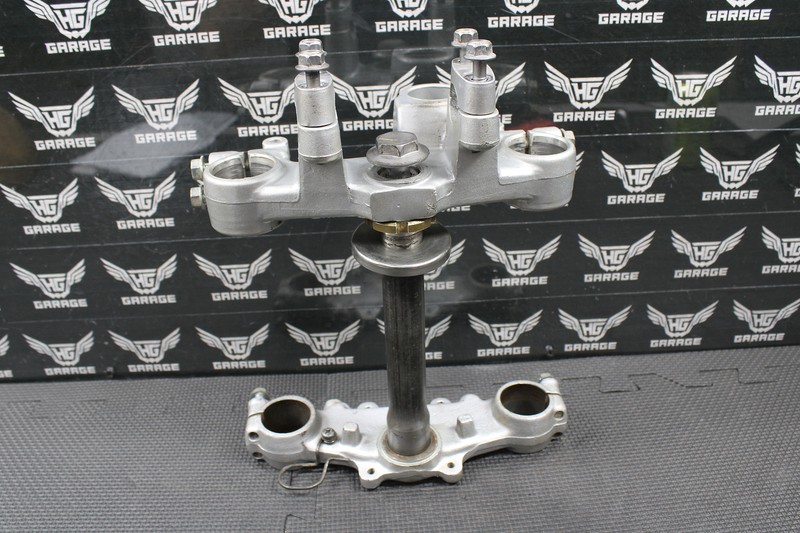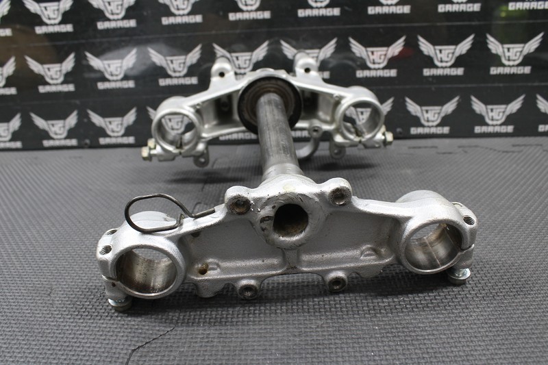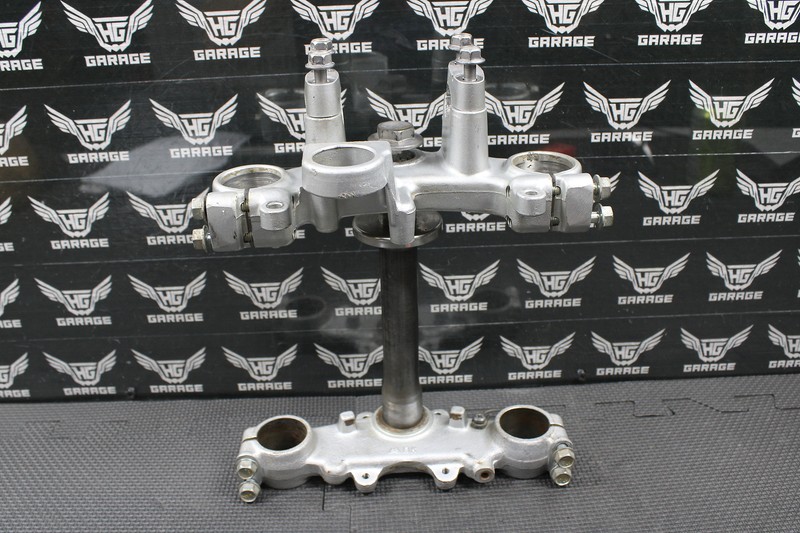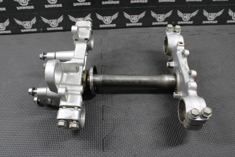 This triple tree set is in very good condition and shows normal signs of wear. Nice and straight with no issues. All threaded holes are intact. Bearings removed and ready for new ones.