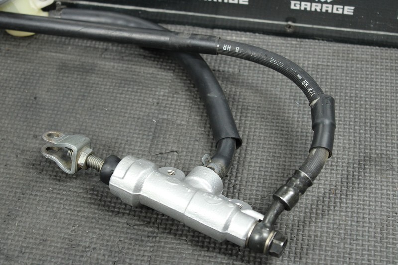 This rear master with reservoir is in good condition and shows normal signs of wear. Master cylinder didnt build pressure properly when assembled, and will need to be rebuilt in order to function properly. No cracks, or breaks. Ready to rebuild, and install.