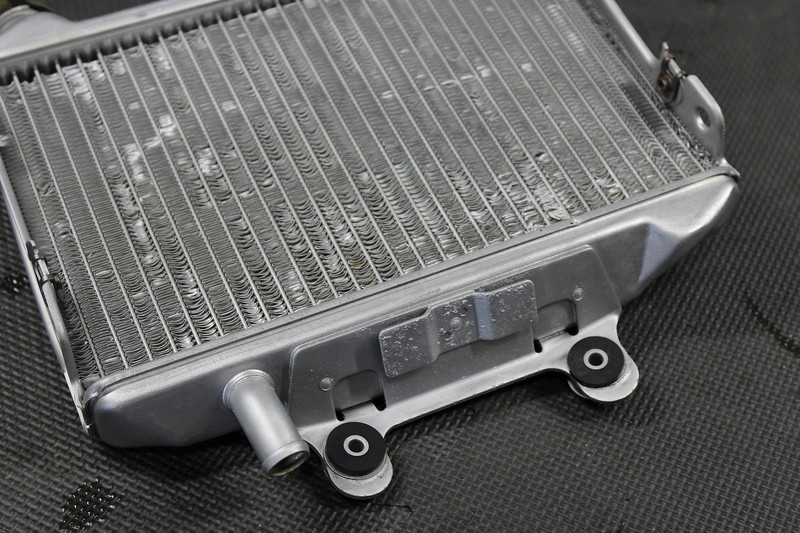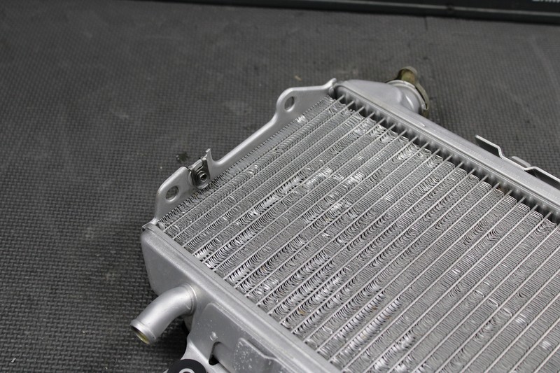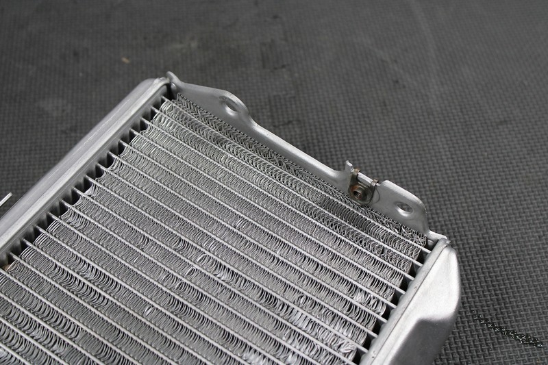 This radiator is in good condition and shows normal signs of wear. Has one small bend on the left side as shown, still mounts as it should with no issue. No cracks, or leaks. Ready to bolt on!
