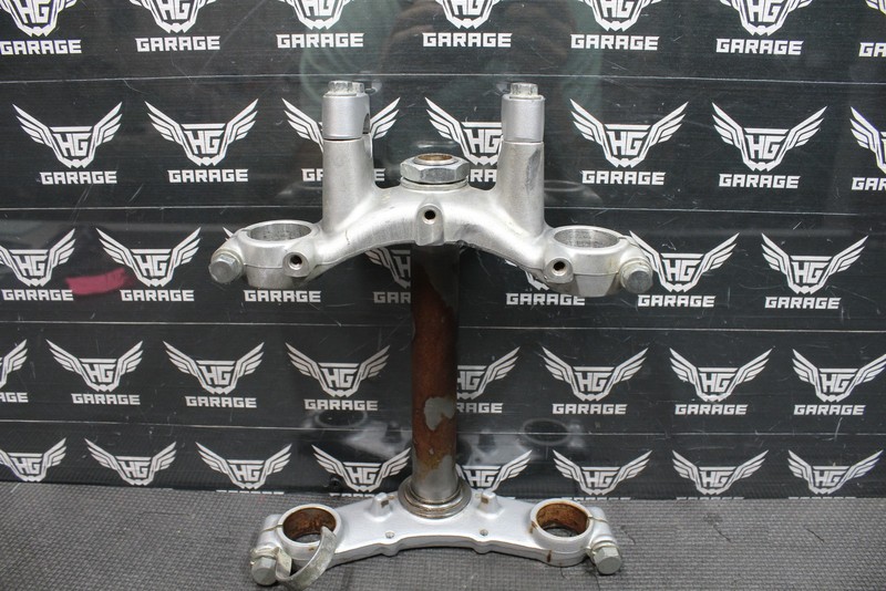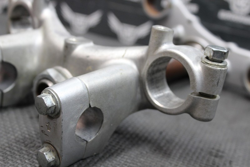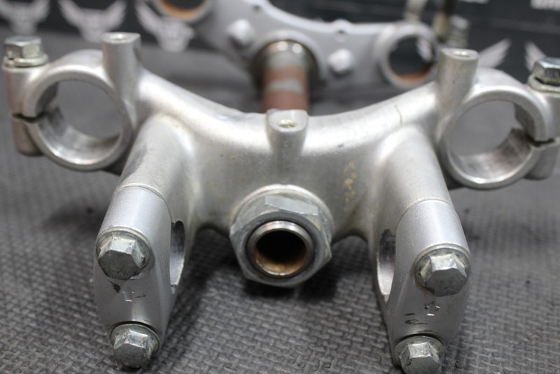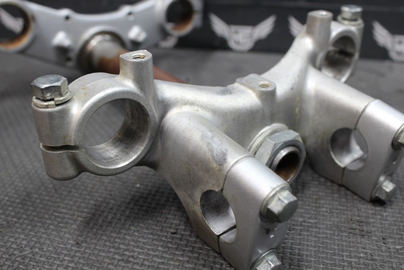 This triple tree set is in good condition and shows normal signs of wear. No cracks, welds or repairs. All bearings will need to be replace before installed. Ready to assemble and ride.