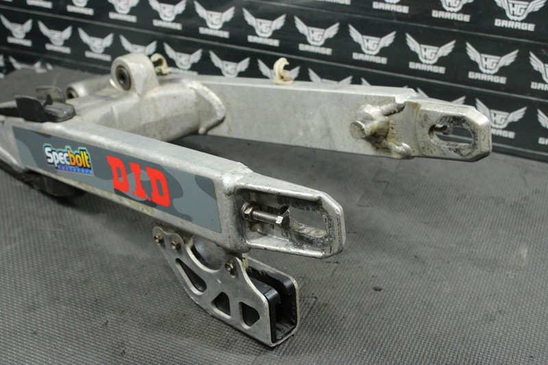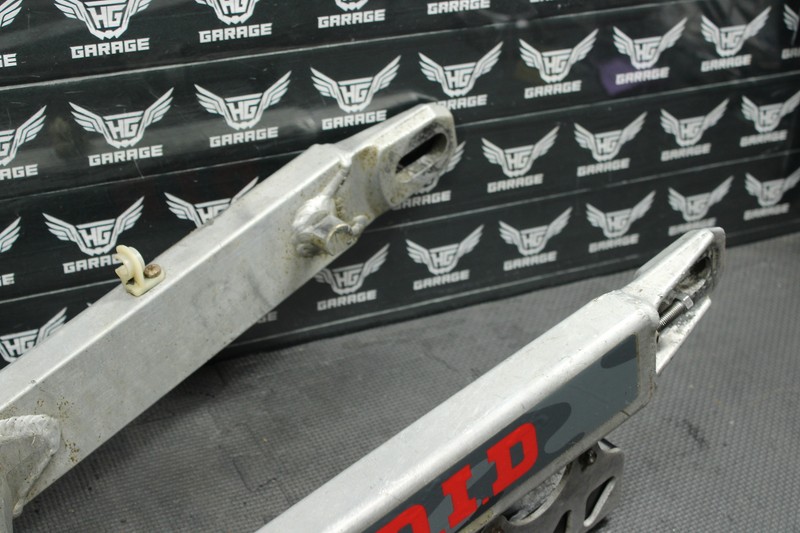This swingarm is in very good condition and shows normal signs of wear. No cracks, welds, or repairs. has some wear from sprocket hardware rubbing as shown, nothing major or excessive, and has plenty of meat left. No excessive chain wear. Bearings will need to be replaced.