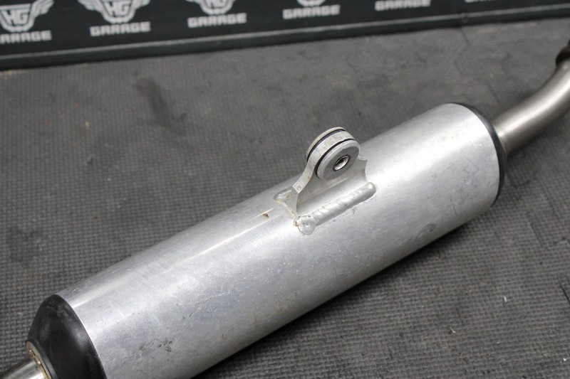This muffler is in very good condition and shows normal signs of wear. No cracks, or repairs. Pipe mounts, and functions as it should. Recommend repacking before installed, but can be ran as is. Ready to install, and ride.