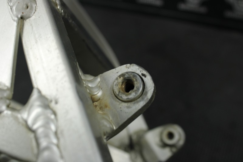 This subframe is in good condition and shows normal signs of wear. No cracks, welds, or repairs. All mounting tabs intact. All threads function properly. Has a minor bend where rear fender mounts, however does not effect how it mounts, or functions. Ready to mount, and ride.
