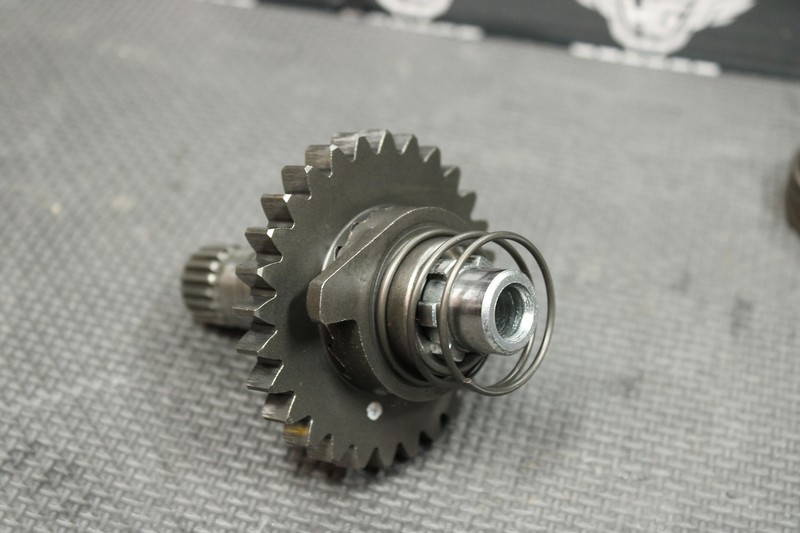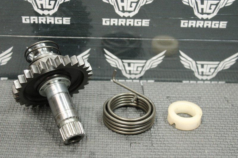 This kickstart gear with shaft is in very good condition and shows normal signs of wear. Good functioning shape. No cracked, or chipped teeth. Ready to install.