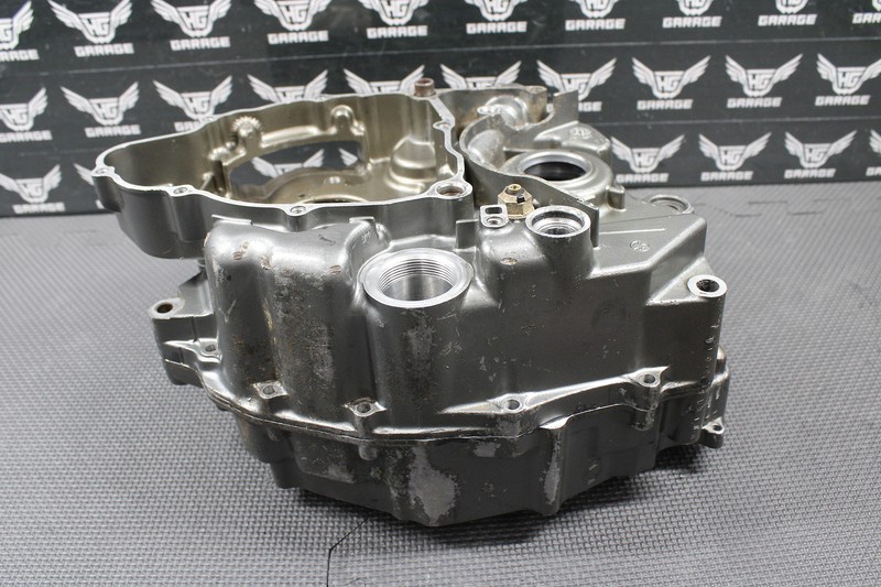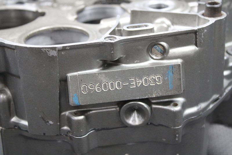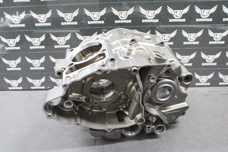 This crankcase set is in goodcondition with minor wear. No cracks or leaks. All sealing surfaces, threaded holes, and bearing journals are fully intact. Has a small chipped area near the front sprocket as shown. Good running shape.