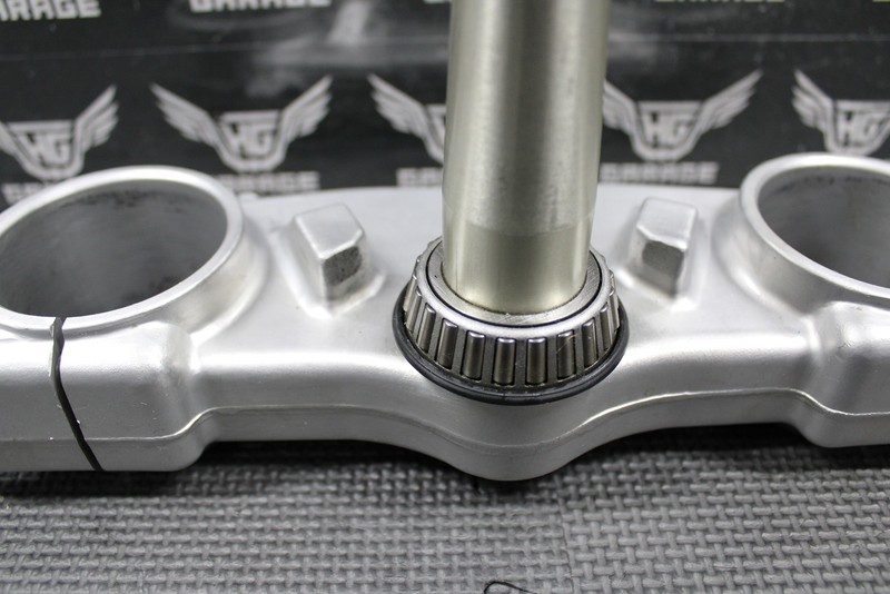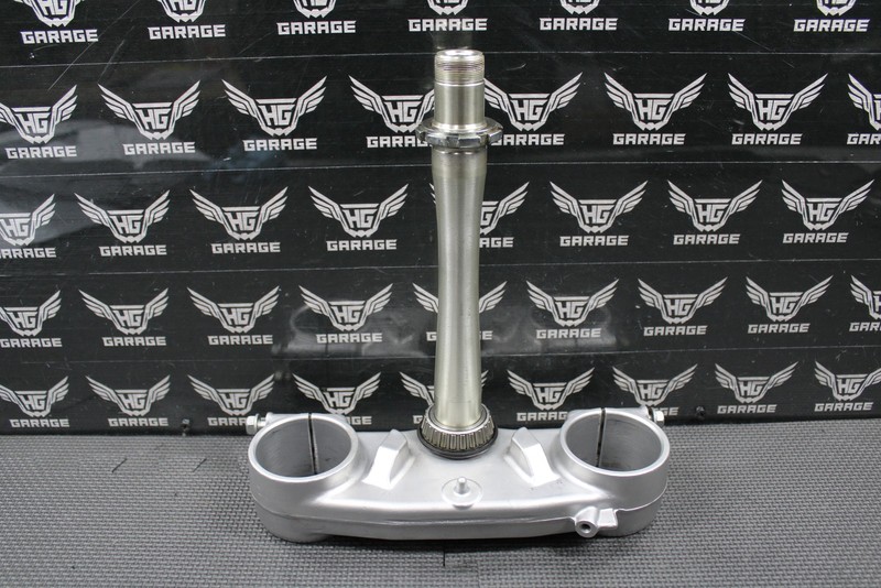 This OEM lower triple tree is in very good condition and shows normal signs of wear. No cracks or damage. All threaded holes are intact. Bearing turns freely.