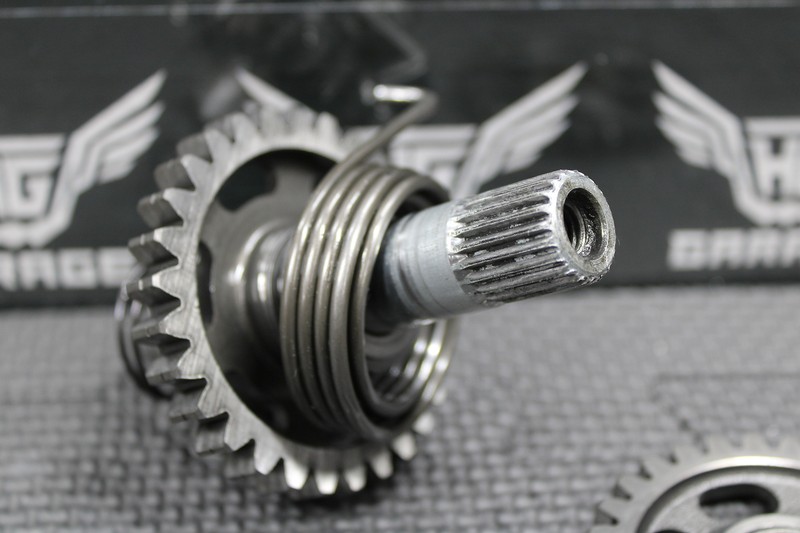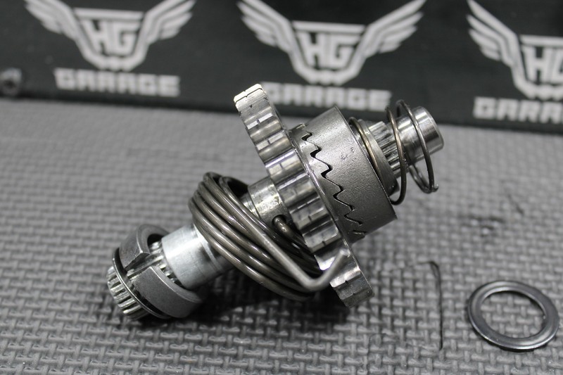 This kickstart gear with shaft is in very good condition and shows normal signs of wear.