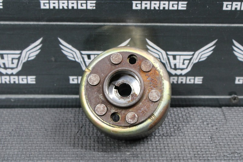 This stator flywheel is in very good condition and shows normal signs of wear. Nice running shape. No stripped threads. Ready to bolt on, and ride.