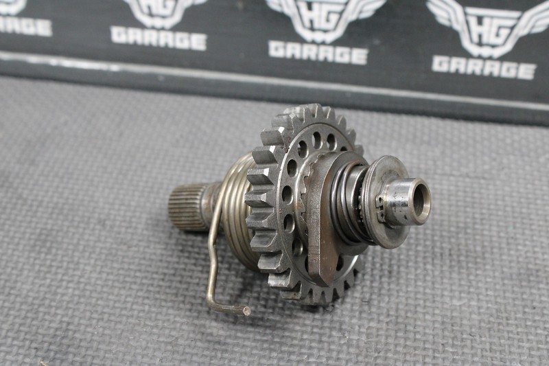 This kickstart gear with shaft is in very good condition and shows normal signs of wear. No cracked, or chipped teeth. Nice functioning shape. Ready to install.