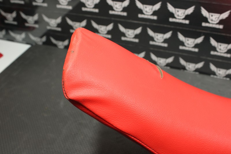 This seat is in very good condition and shows normal signs of wear. Seat cover has some rips, and tears as shown. Seat pan in great shape with no broken mounting tabs, and mounts as it should. Ready to bolt on,and ride.