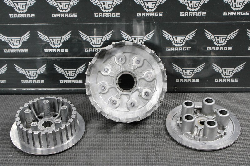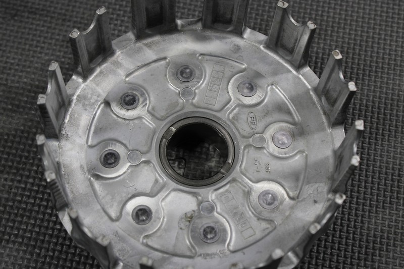 This clutch basket is in very good condition and shows normal signs of wear. No excessive wear, or grooving. Nice low hour clutch clutch basket, pressure plate, and hub assembly. Ready to install!