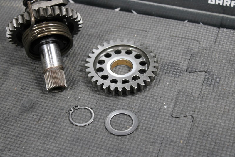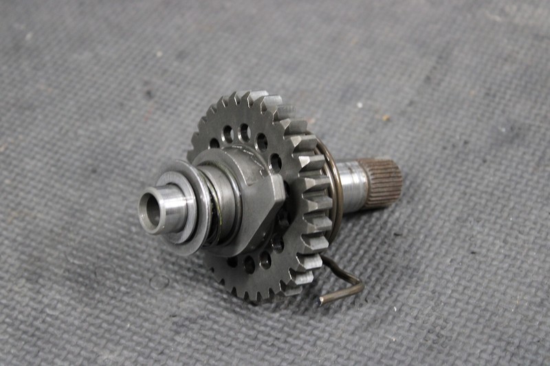This kickstart gear with shaft is in very good condition and shows normal signs of wear. No cracks or damaged splines ready to install and ride.