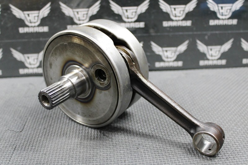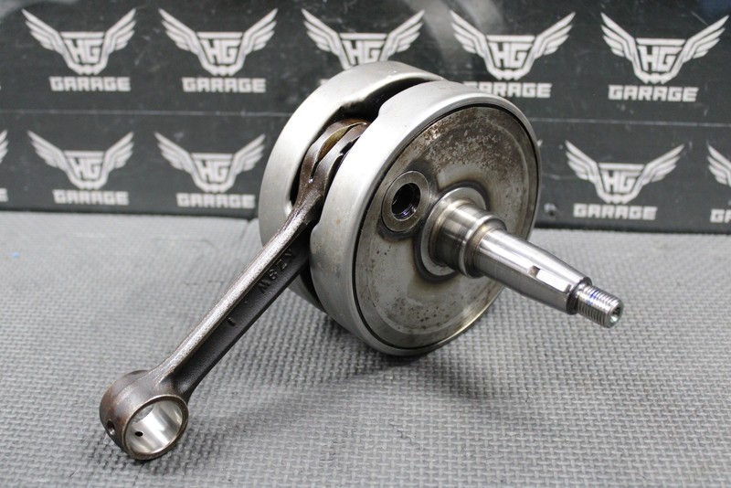 This OEM crankshaft is in good condition and shows normal signs of wear. Removed from a strong running bike. Shafts and threads all in great shape with no damage. Rod spins freely and there is no end play. Bearing journals in good condition and bearings fit tight. Ready to install and run!