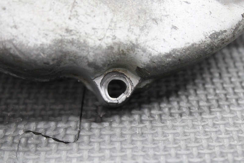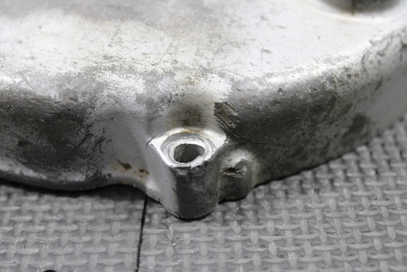 This OEM clutch cover is in good condition and shows normal signs of wear. No leaks. One small ding on the bottom bolt hole as shown. Bolt still fits and functions. All sealing surfaces are intact. No other cracks or damage. Removed from a good running engine.