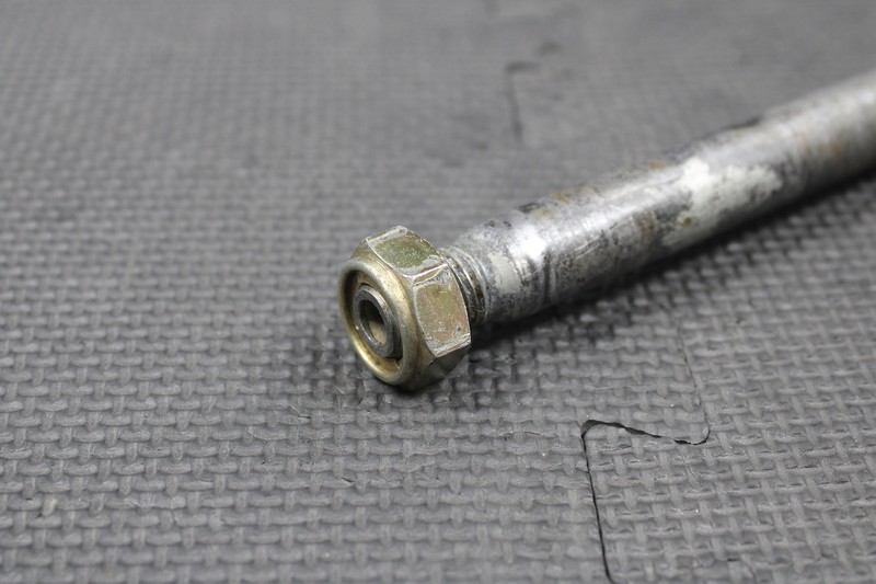 This swingarm bolt is in good condition and shows normal signs of wear.