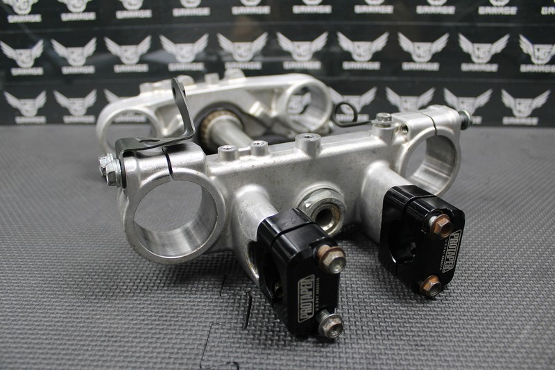 This triple tree set is in very good condition and shows normal signs of wear. Comes with Pro Taper Fat Bar clamps for 1 1/8" bars. All bolt holes are intact. Bearings in good shape and turn freely. Ready to install and run!