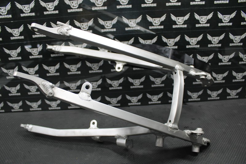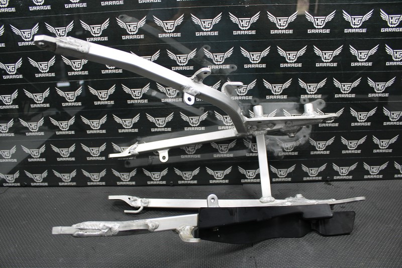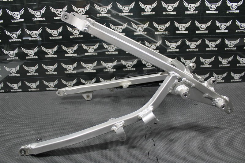 This subframe is in very good condition and shows normal signs of wear. Nice and straight. No cracks or damage. All tabs and bolt holes are intact. Ready to bolt up and ride!
