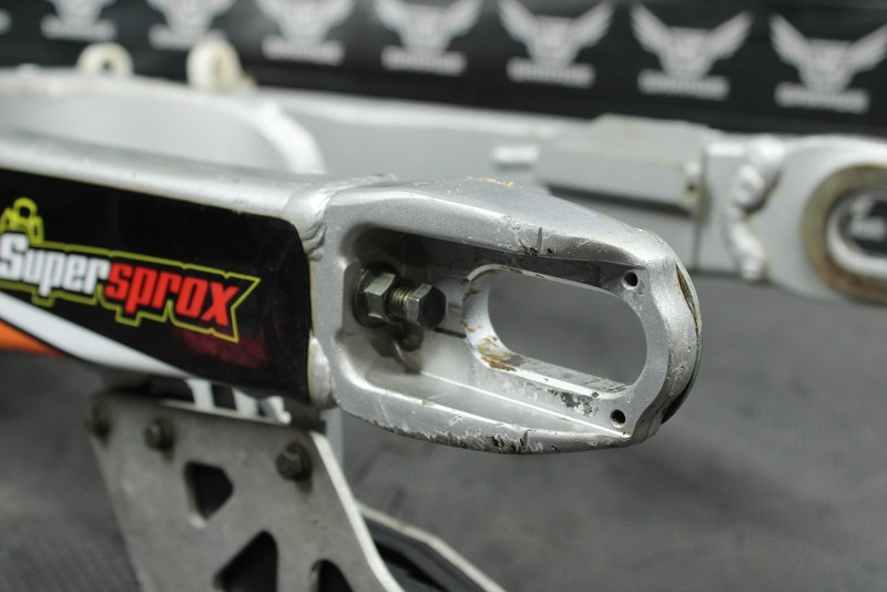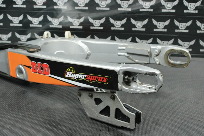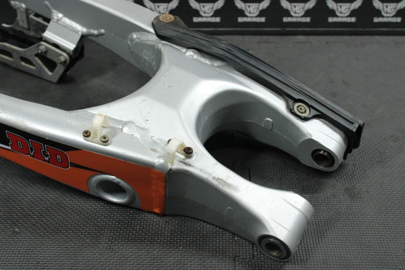 This swingarm is in very good condition and shows normal signs of wear. No cracks, welds, or repairs. No excessive chain wear. Bearings turn freely with no excessive play however feel gritty and should be greased before installed for optimal performance. All threaded holes intact, and thread properly. Ready to install, and ride.