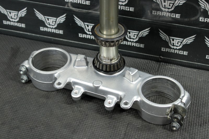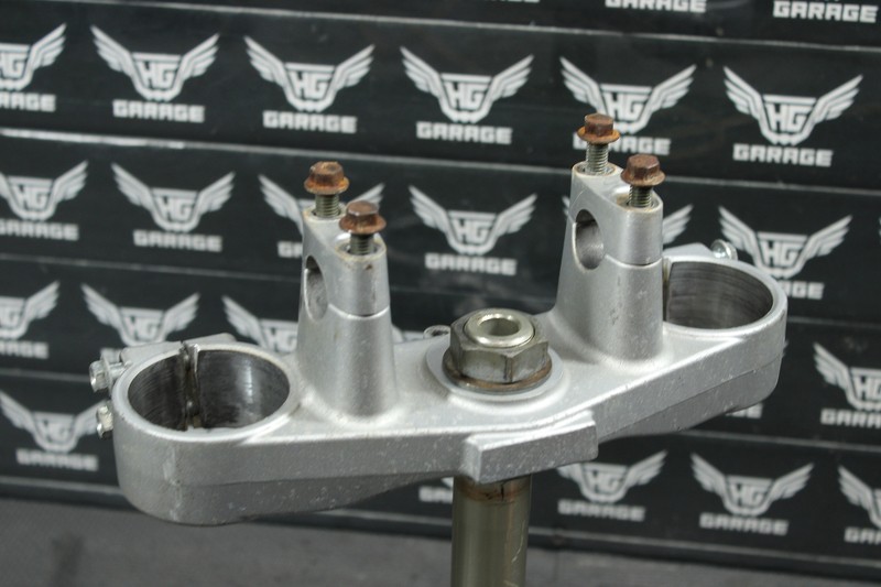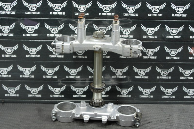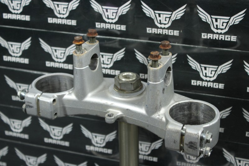 This triple tree set is in very good condition and shows normal signs of wear. No cracks, or repairs. Some hardware is aftermarket. Bearings show signs of wear, and should be replaced before installed. All threaded holes intact. Ready to mounts, and ride.