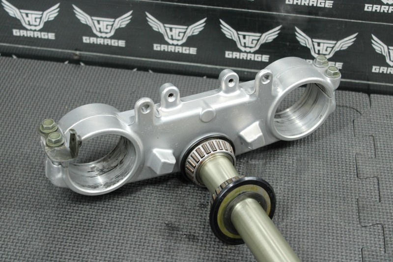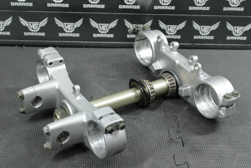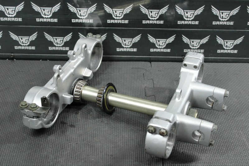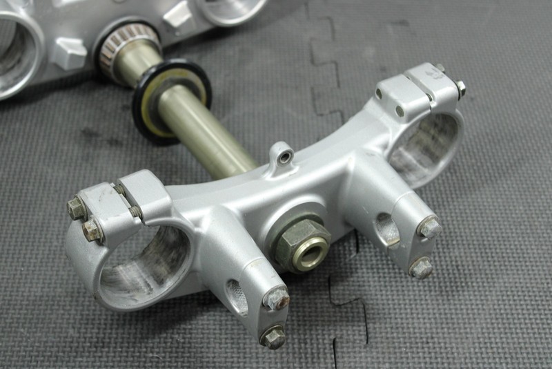 This oem triple tree set is in very good condition and shows normal signs of wear. No cracks, or breaks. All threaded holes in great shape. Bearings rotate freely, and felt tight when installed. Good running shape.