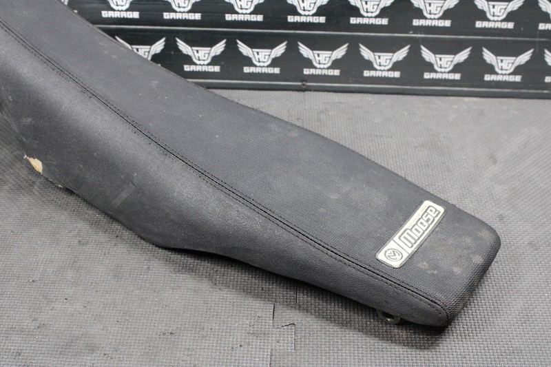 This seat is in very good condition and shows normal signs of wear. Seat cover has some rips. and tears as shown, however is still intact. Seat pan in great shape, no cracke,d or broken mounting tabs. Ready to bolt on, and ride.