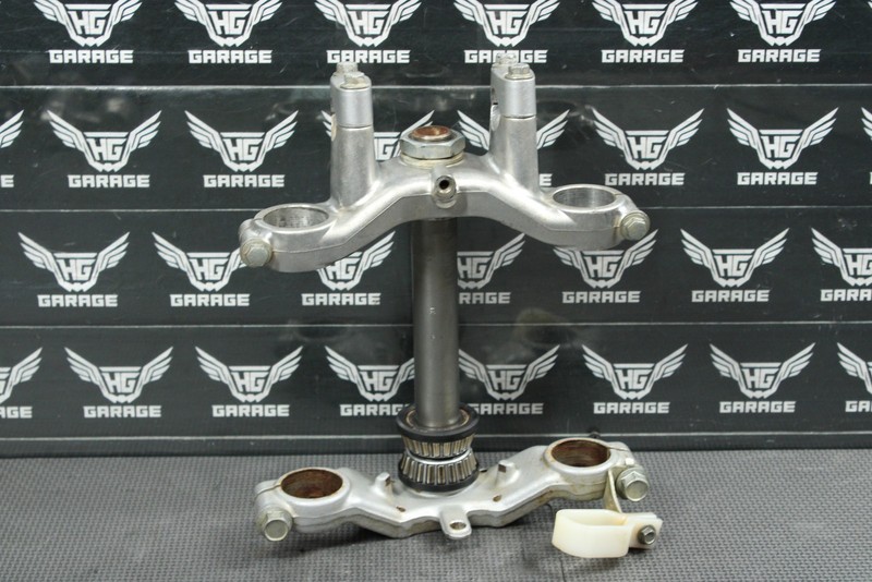 This triple tree set is in very good condition and shows normal signs of wear. No cracks, or breaks. All threaded holes in great shape. Bearings feel nice, and tight. Ready to mount, and ride.