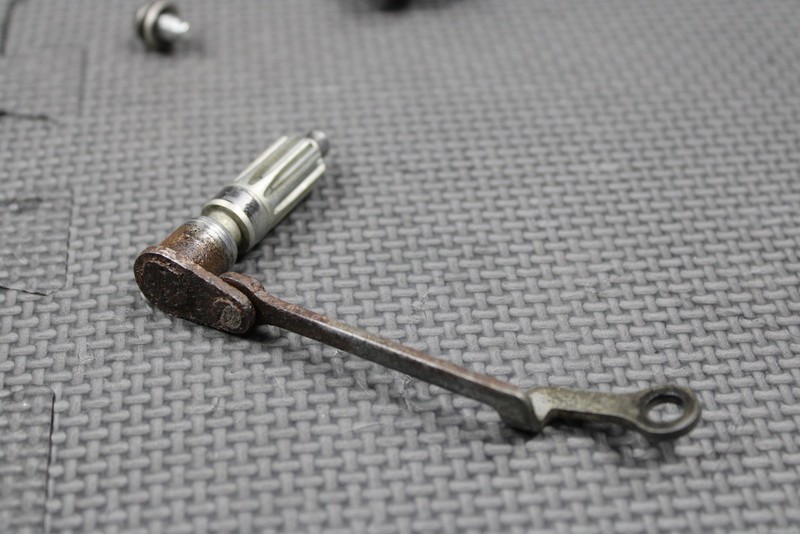 This power valve linkage & governor is in good condition and shows normal signs of wear. Good functional shape. Linkage arm has a bit of surface corrosion, but no cracks or damage. Good functional assembly.
