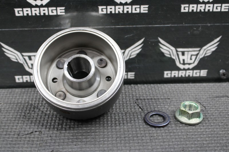 This OEM flywheel is in great condition with minor wear. Excellent running shape with no damage.