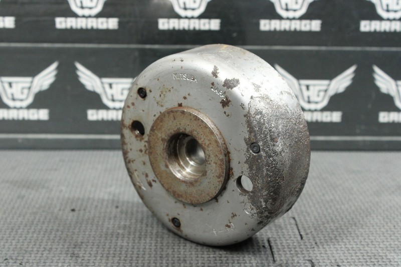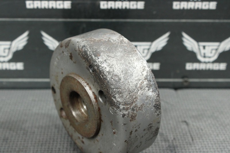 This stator flywheel is in fair condition and shows normal signs of wear. Has a decent amount of pitting/corrosion in some areas as shown. Still functioned properly when installed. All threads intact. Overall not the best looking, but is fully functional.